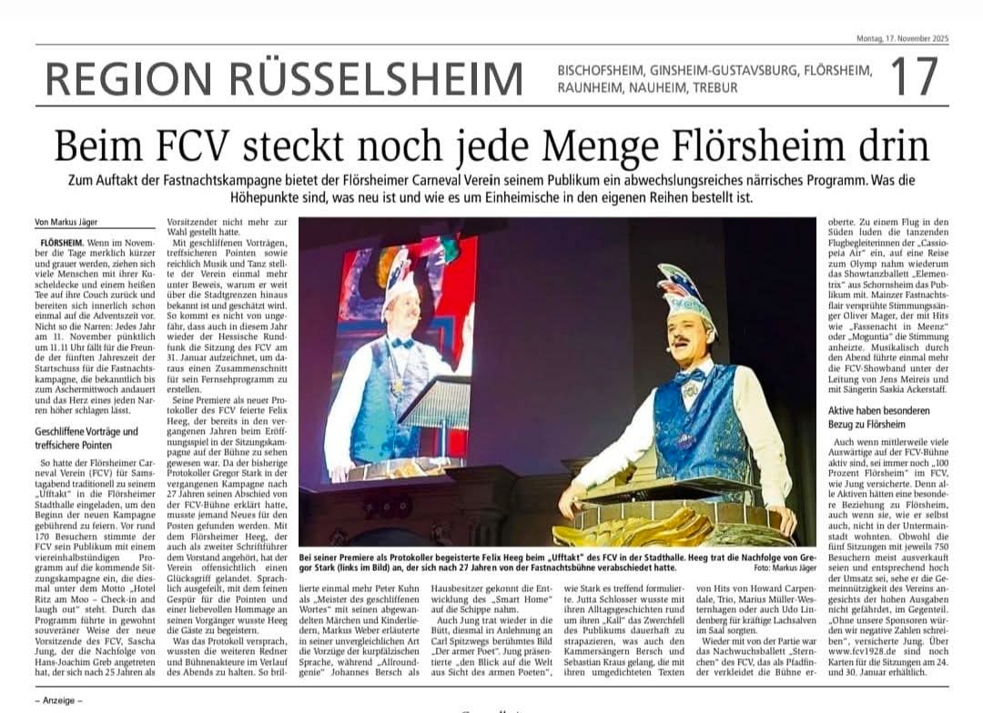 Flörsheimer Carneval Verein 1928 e.V. (FCV) Rathausplatz 4 65439 Flörsheim am Main Deutschland